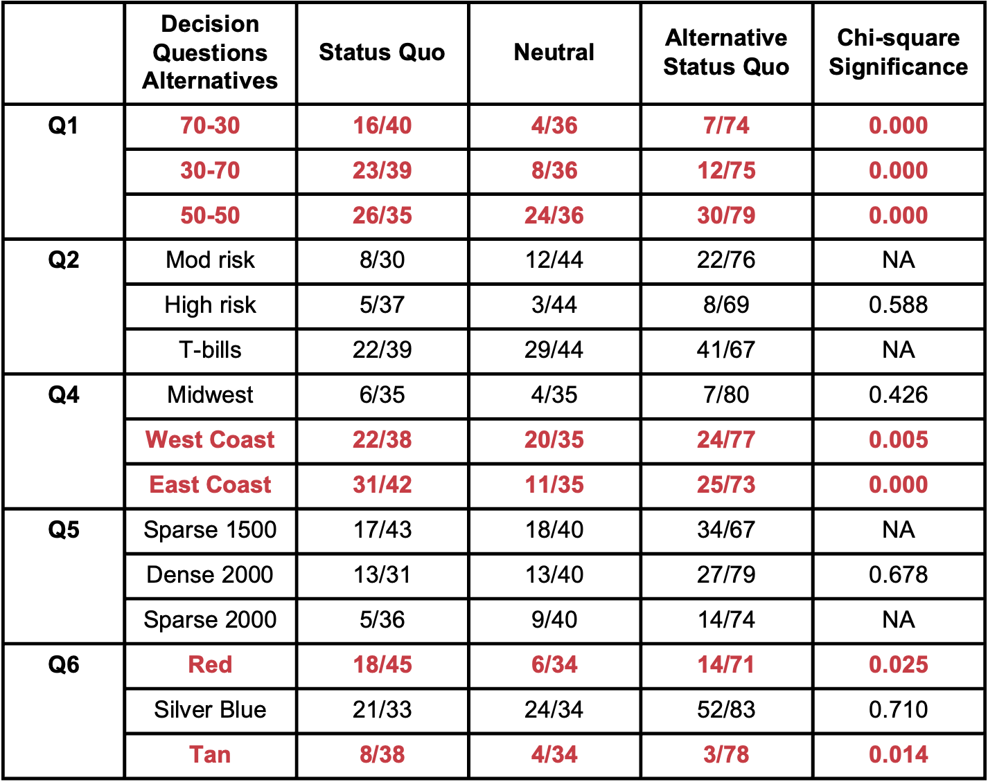 In several examples in the paper, as well as our replication, an option made the status quo became significantly more popular as the final choice. Below is a summary of our results.